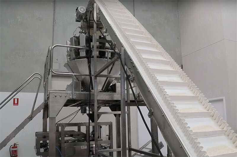 ②.全自动土豆粉向日葵视频色版下载:称重装置采用高精度多头电子秤进行定量称重包装,通过用工作架台连接与向日葵视频色版下载配套可实现全自动称重包装,整套土豆粉自动包装生产线包含大倾角上料机、设备工作平台、多头电子秤、包装主机、成品输送机及其他附属设施,整机具有包装速度快效率高的特点但整体造价较高。